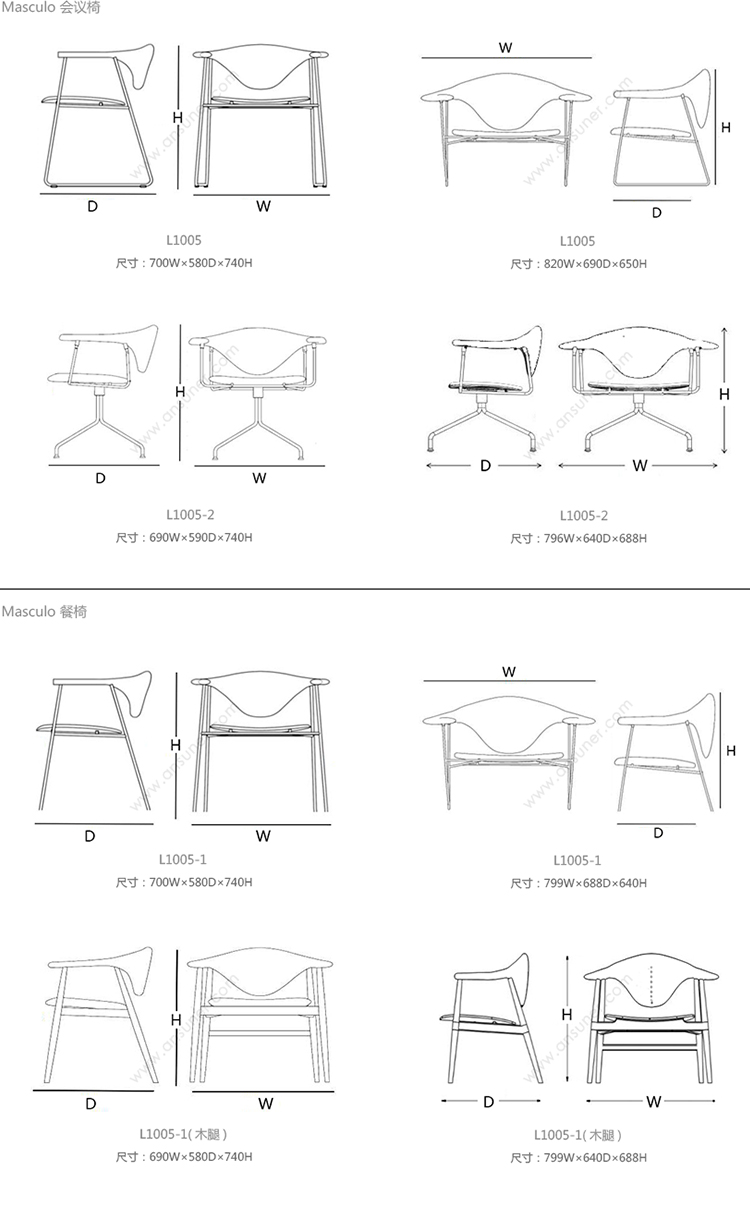 Masculo 办公椅 系列尺寸/示意图