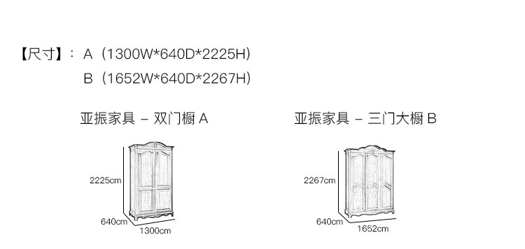 亚振家具 - 双门橱 产品尺寸/示意图