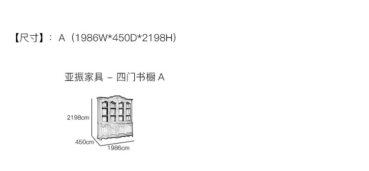 亚振家具 - 四门书橱 产品尺寸/示意图