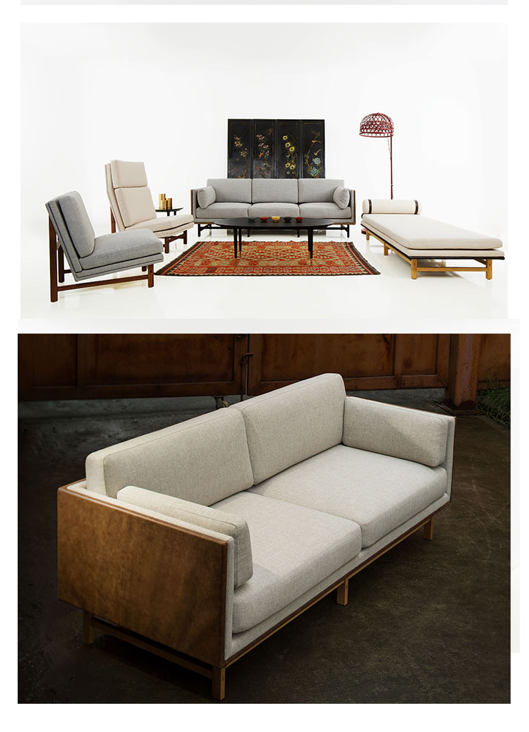 该系列产品选取核桃木或白蜡木制作框架,配以多款软包布料选择,线条利落分明,令室内空间更显精致。细节至上的制作工艺、怡人的配色以及高品质的选材成就其纯粹自然的风格。