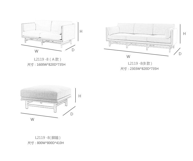 SW 双人位沙发 系列尺寸/示意图