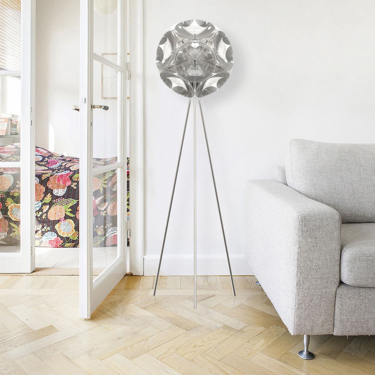 在常规十二面体的每一侧,Hutten都放置了一个圆形反射器。 结果是一个有趣的3D对象,你看到的每个角度不同变化。 丰富的物体,为空间提供了大量的氛围。 无论是悬挂版还是落地版。