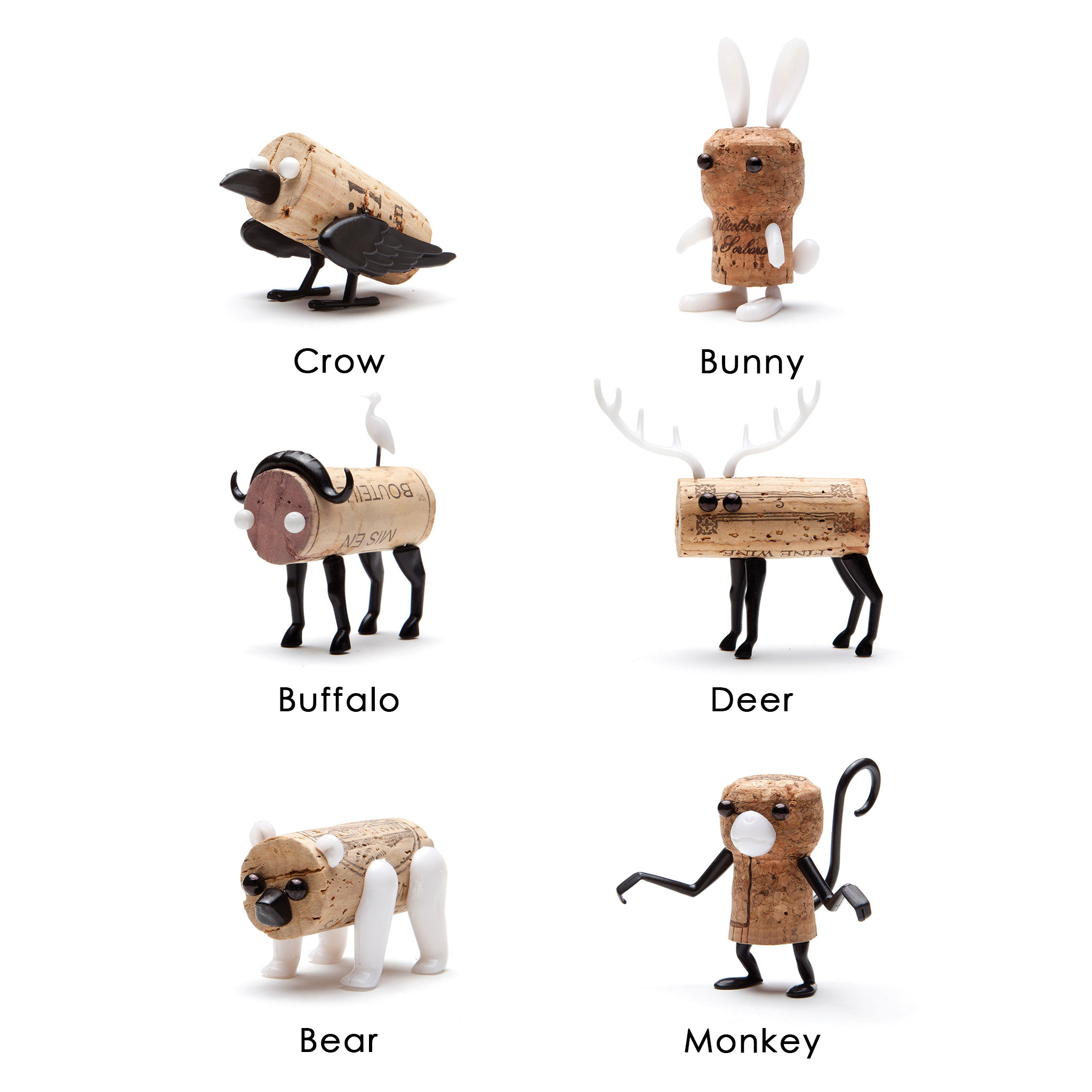 用这些可爱的、可收集的动物部件让你的晚宴和瓶塞充满活力。软木塞不包括