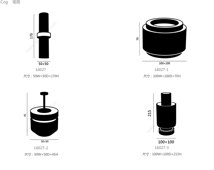 Cog 笔筒 系列尺寸/示意图