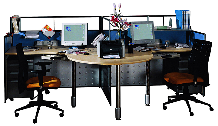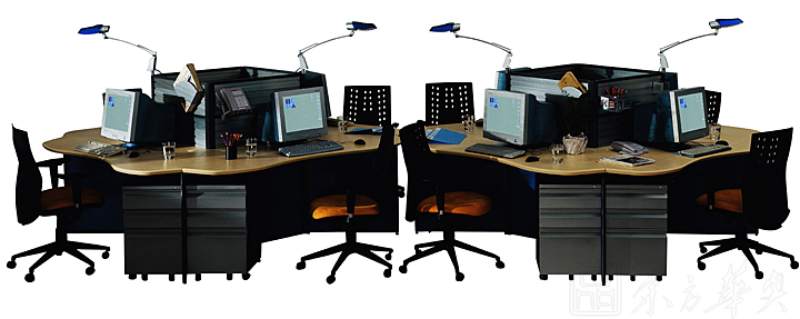 ※   上图为两人位办公区,可以在中间加上半圆的台子,放置公共的资料使用,方便!