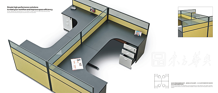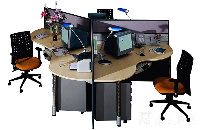 ※   屏风90度和180度连接,整合四人位背对背型,简单,便于沟通和洽谈!