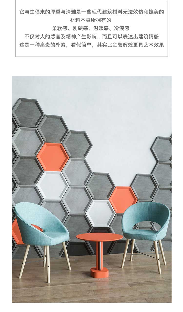 它与生俱来的厚重与清雅是一些现代建筑材料无法效仿和媲美的材料本身所拥有的柔软感、刚硬感、温暖感、冷漠感不仅对人的感官及精神产生影晌,而且可以表达出建筑情感这是一种高贵的朴素,看似简单,其实比金碧辉煌更具艺术效果。