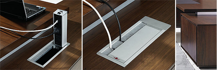 ※  班台配套铝合金毛刷翻盖线槽,内部配置:网线孔,电话线孔,三插孔,音响孔,麦克孔,配置可选!