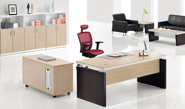 ※  系列配套主管位的主台和副台连体结构展示,增大办公台空间区域。