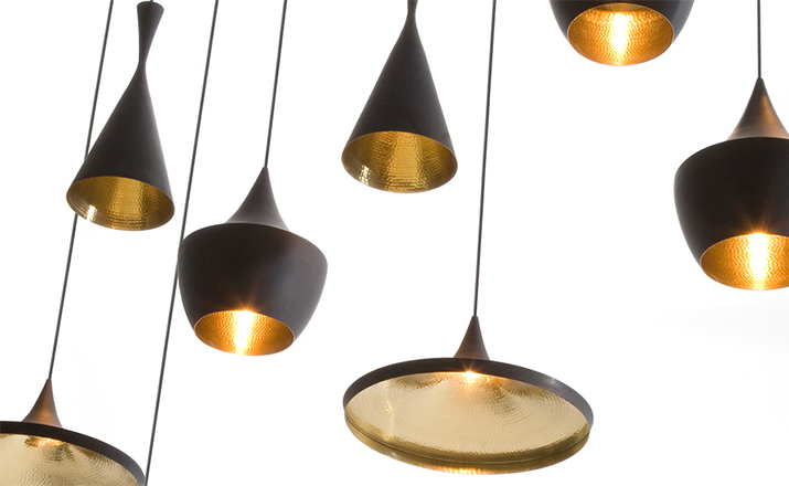 "Beat Light by Tom Dixon is a series of lights inspired by the sculptural simplicity of brass cooking pots and traditional water vessels on the subcontinent. The Beat lights are spun and hand-beaten by renowned skilled craftsmen of Moradabad in Northern India.Spun brass shade with a sprayed and lacquered exterior and hand-beaten interior. Beat shades are formed by hand through spinning and beating techniques making each shape unique. A protective lacquer is applied to the inside surface to protect and fix the finish. A dark patina is then applied at the end of the production."