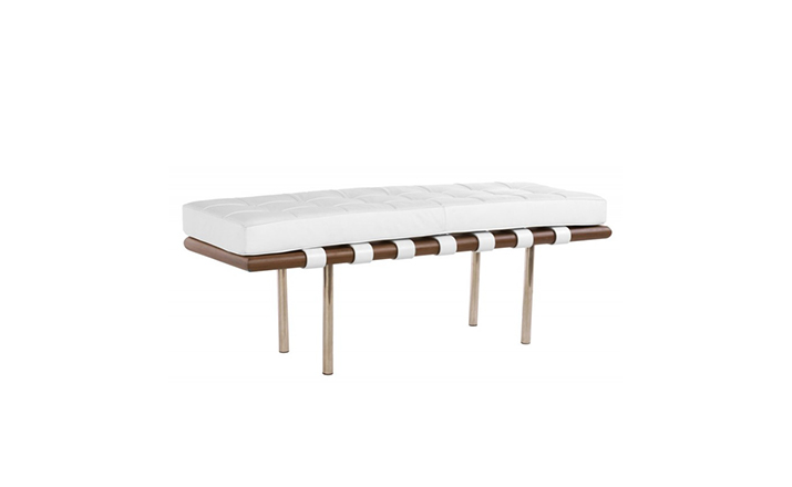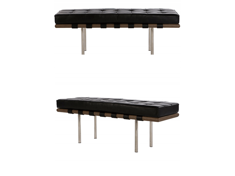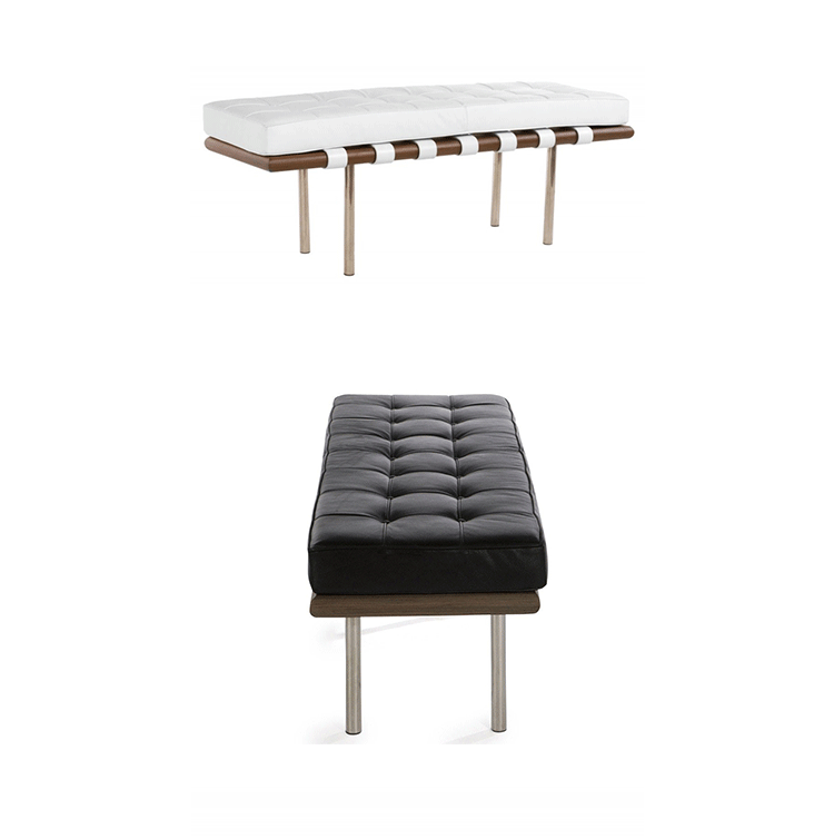 barcelona stool(巴塞罗那凳)是美国设计师Harry Bertoia设计的,像她其他突破性的工业设计一样,barcelona stool(巴塞罗那凳)表现了20世纪中期的现代设计和体系结构。人们能从这款长凳子的设计中领略到设计师“少即是多”的建筑理念。它将眩亮的不锈钢、柔软的皮革以及原木完美地结合在一起,具有很强的现代感。不管是居家还是办公场所,巴塞罗那长凳都能放置其中,成为很好的摆设;无论是小坐片刻还是午间休憩,都是理想之选。