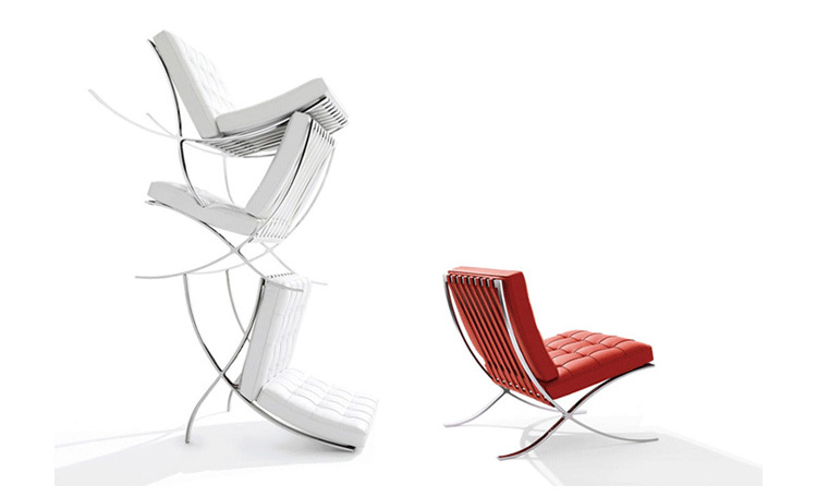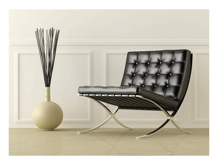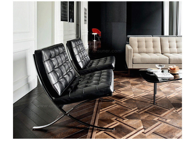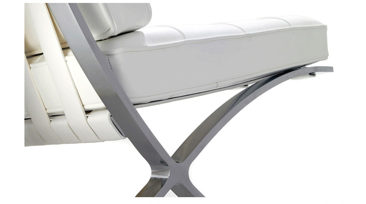 巴塞罗那椅由设计师密斯在1929年巴塞罗那世界博览会上,为了欢迎西班牙国王和王后而设计,同著名的德国馆相协调。这件体量超大的椅子也明确显示出高贵而庄重的身份。当年的世博会德国馆是密斯的代表作,但由于建筑的设计意念独特,竟没有合适的家具与其搭衬,所以他不得不专门设计了巴塞罗那椅来迎接国王和王后