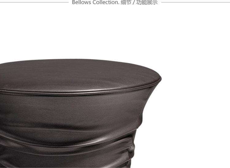 创新的设计源于对不寻常的想法进行塑造的勇气。Bellows Collection系列就是一个例子,凳子和桌子的设计令人眼前一亮,并达到了我们的预期。柔软的皮革褶皱的包裹在坚固的框架上。褶皱程度随着它的高度而改变。用一个最简单的动作,便可以利用隐藏于座椅下的环形扳机进行高度调节。