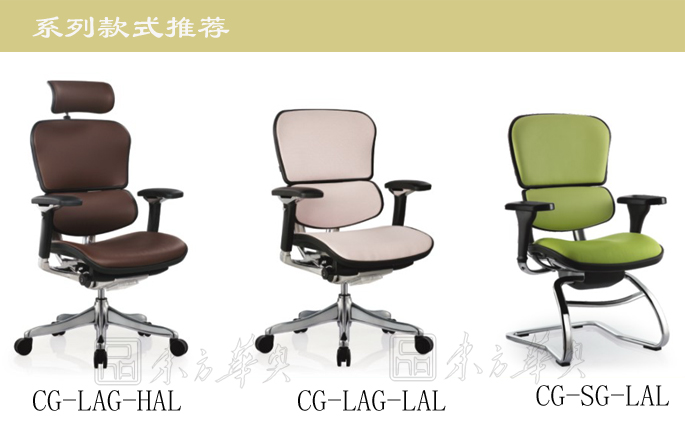 背垫、腰枕及座垫均为黄牛面皮;黑色塑胶框架,PU扶手垫;塑胶头枕横把手; 背支撑架、底盘支撑架均为铝合金