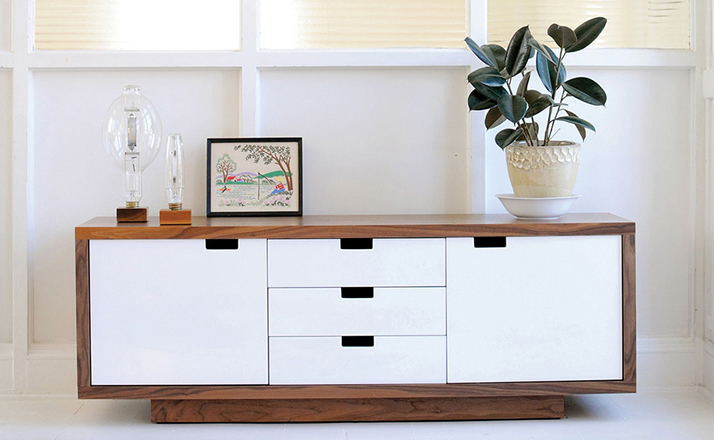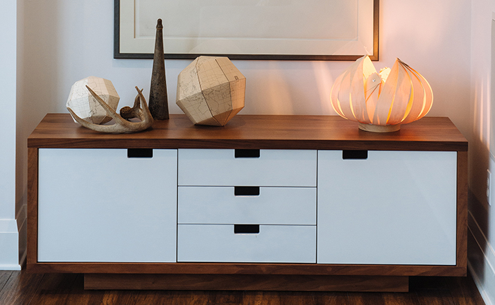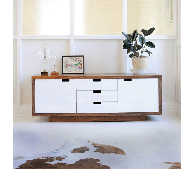 wilson cabinet(威尔逊柜)是一个多功能存储柜,辅之以白色多外套漆的门和抽屉。它具有集成的句柄和自闭的五金器件。门掩可调式货架。为客厅、餐厅或卧室的现代存储理想之选。制作采用精选MDF板基材胡桃木或水曲柳木皮贴面、胡桃实木或水曲柳实木脚架、环保净味油漆喷涂,做工精湛。