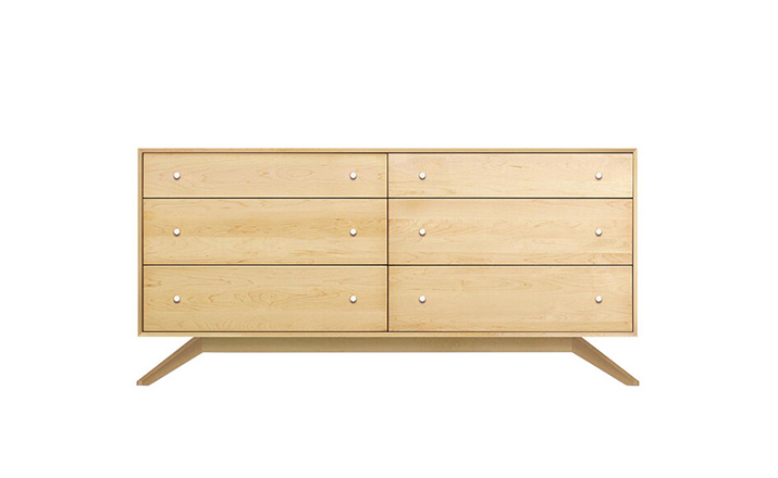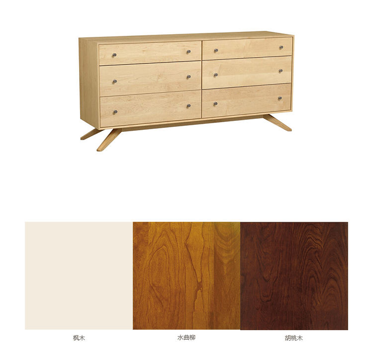 astrid 6 drawers dresser(阿斯特丽德6抽梳妆台)是Copeland Furniture公司astrid实木梳妆台系列之一,宽大的八字形脚架非常吸引人注目,制作并非易事,它其实是一个大工程,同时能引发无限期望和激情,6个平滑抽屉,可以给与提供许多存储空间。制作采用精选MDF板基材、进口美洲胡桃或水曲柳或枫木皮贴面、实木脚架、环保净味油漆喷涂、做工精湛。