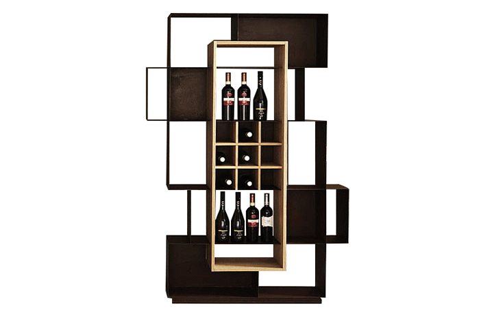 Mooie,一个铁瓶架和书柜,具有双重性质。葡萄酒爱好者在适当的架子上展示他们的美酒,也可以通过收藏个人藏书成为房子知识的摇篮。