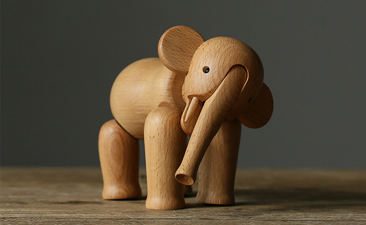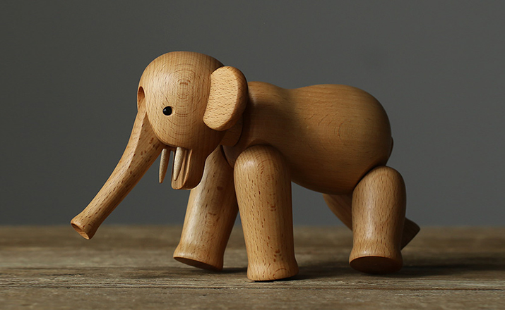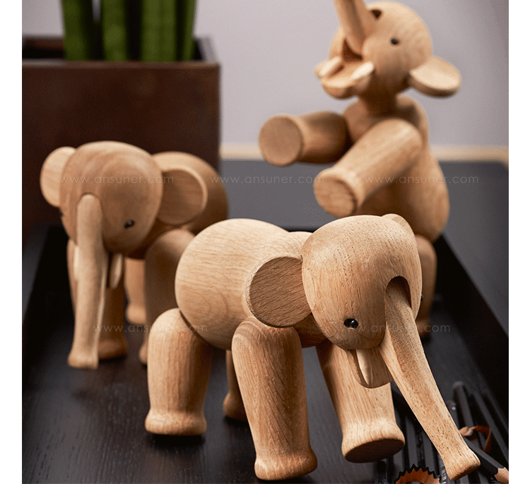 Kay Bojesen Elephant(Kay Bojesen 大象)设计于1953年,出自丹麦设计大师 Kay Bojesen 的设计作品,精致的木制动物系列,是 Kay Bojesen 为人熟知的珍藏作品系列,采用不同的橡木、枫木、柚木等原木素材,保留木材的独特纹理,刻画出各种不同让人莞尔一笑的动物姿态,跳脱生活中的烦琐与紧张,简单的玩偶,轻松的神情,带您回归孩时的天真与简单快乐。精致而限量珍藏的作品系列,适合您作为桌面摆设,或是作为送礼小物,分享您生活中的快乐写意。