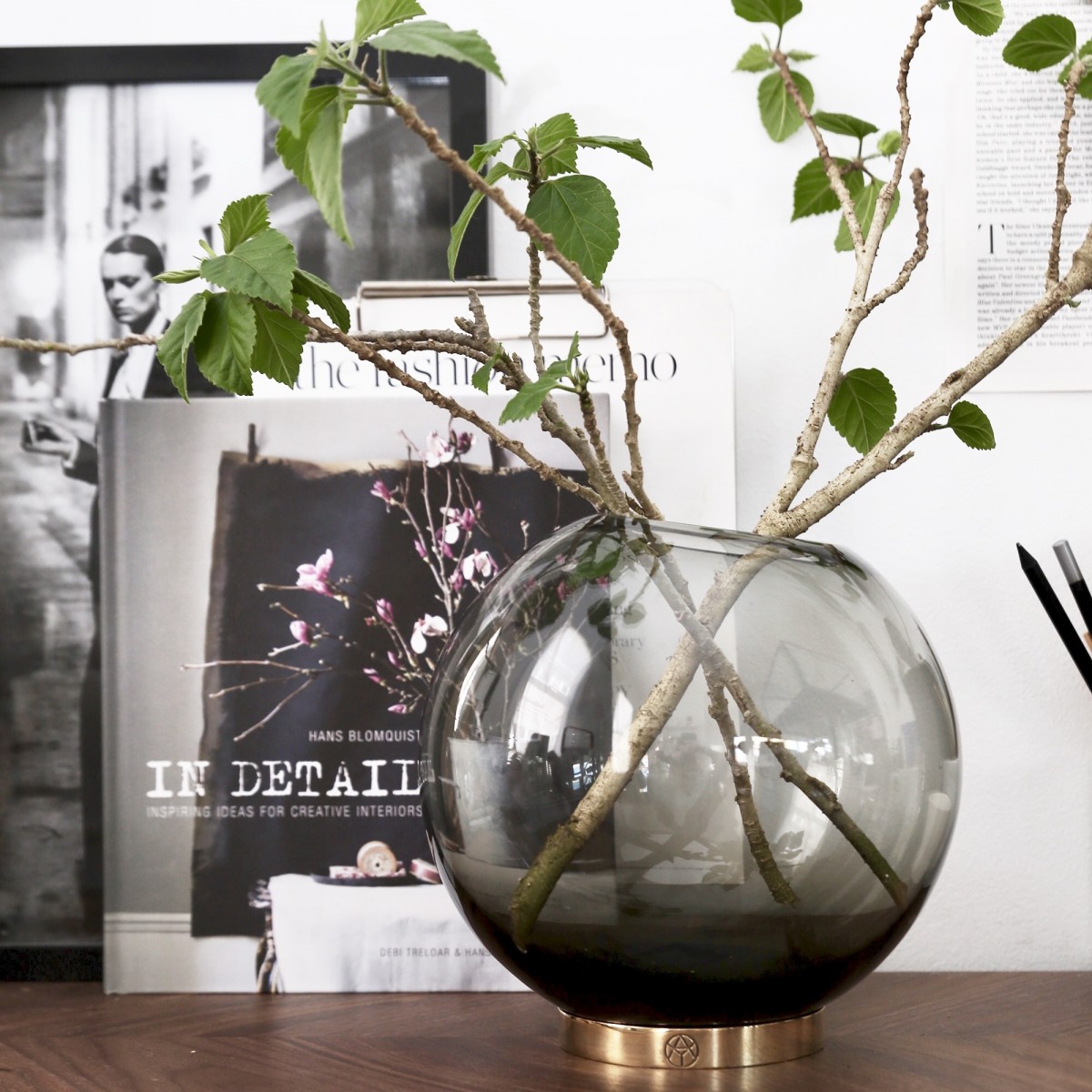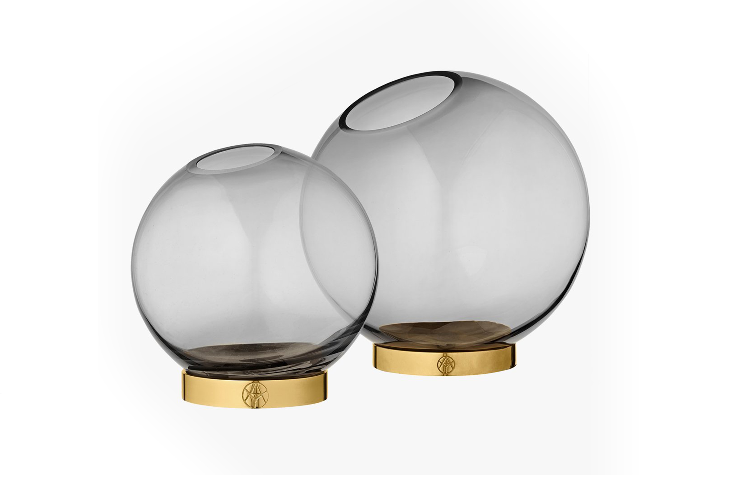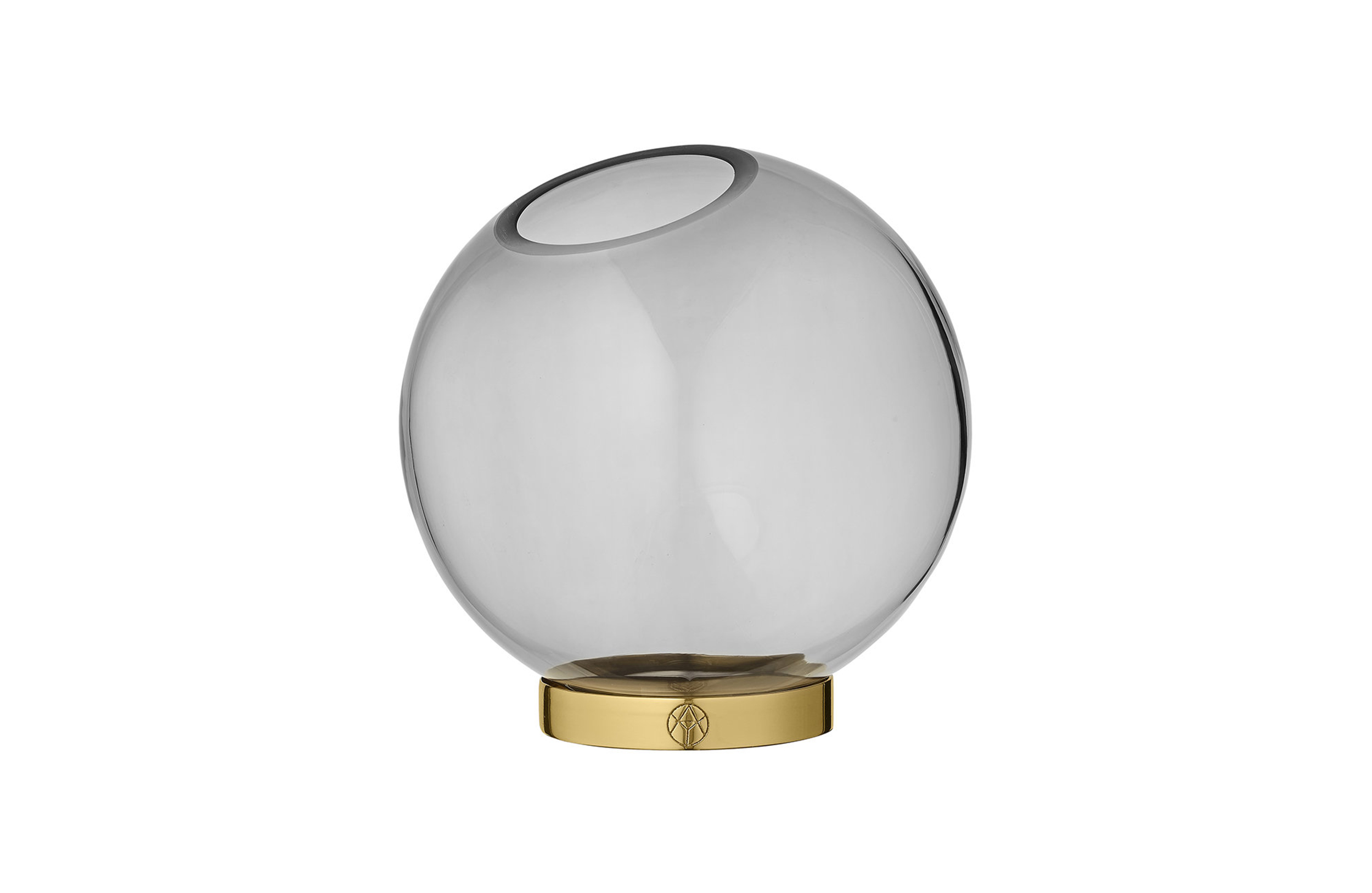 GLOBE 是一个优雅的器皿,由口吹玻璃制成,配上铜环底坐。您可以将它用作装饰花瓶或储物器皿。