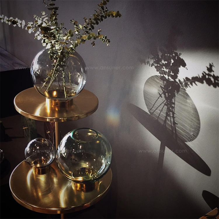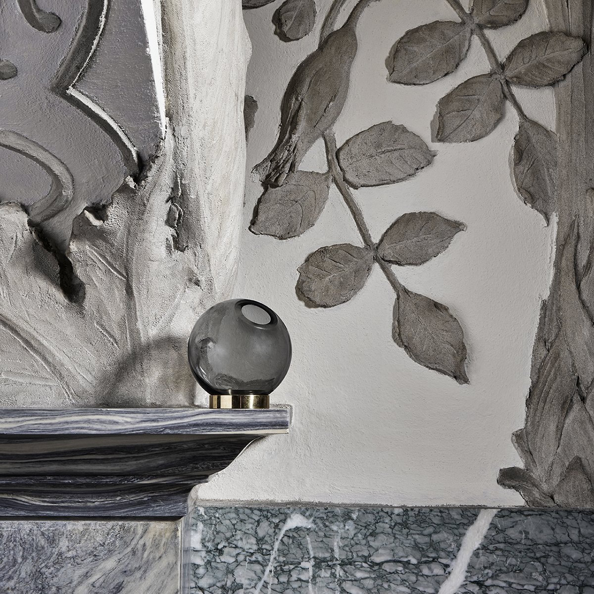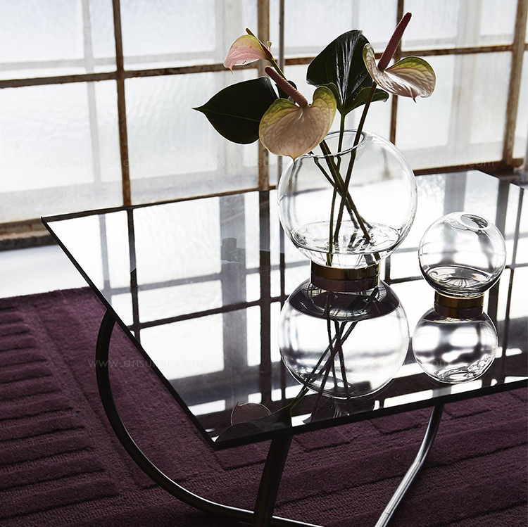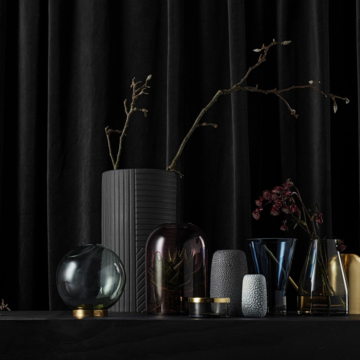 GLOBE 是一个优雅的器皿,由口吹玻璃制成,配上铜环底坐。您可以将它用作装饰花瓶或储物器皿。