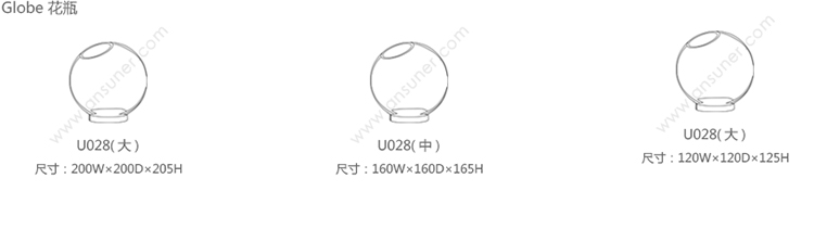 GLOBE 有三种尺寸。由于是手工制作,每一个制成品可能有颜色和形状上微小变化