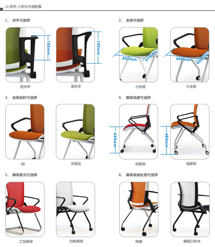 Lii系列推合椅专为灵活多变的工作环境而设计。另外一款弓形访客椅是典型的多用途座椅,适用于各种会议、待客等场合。
