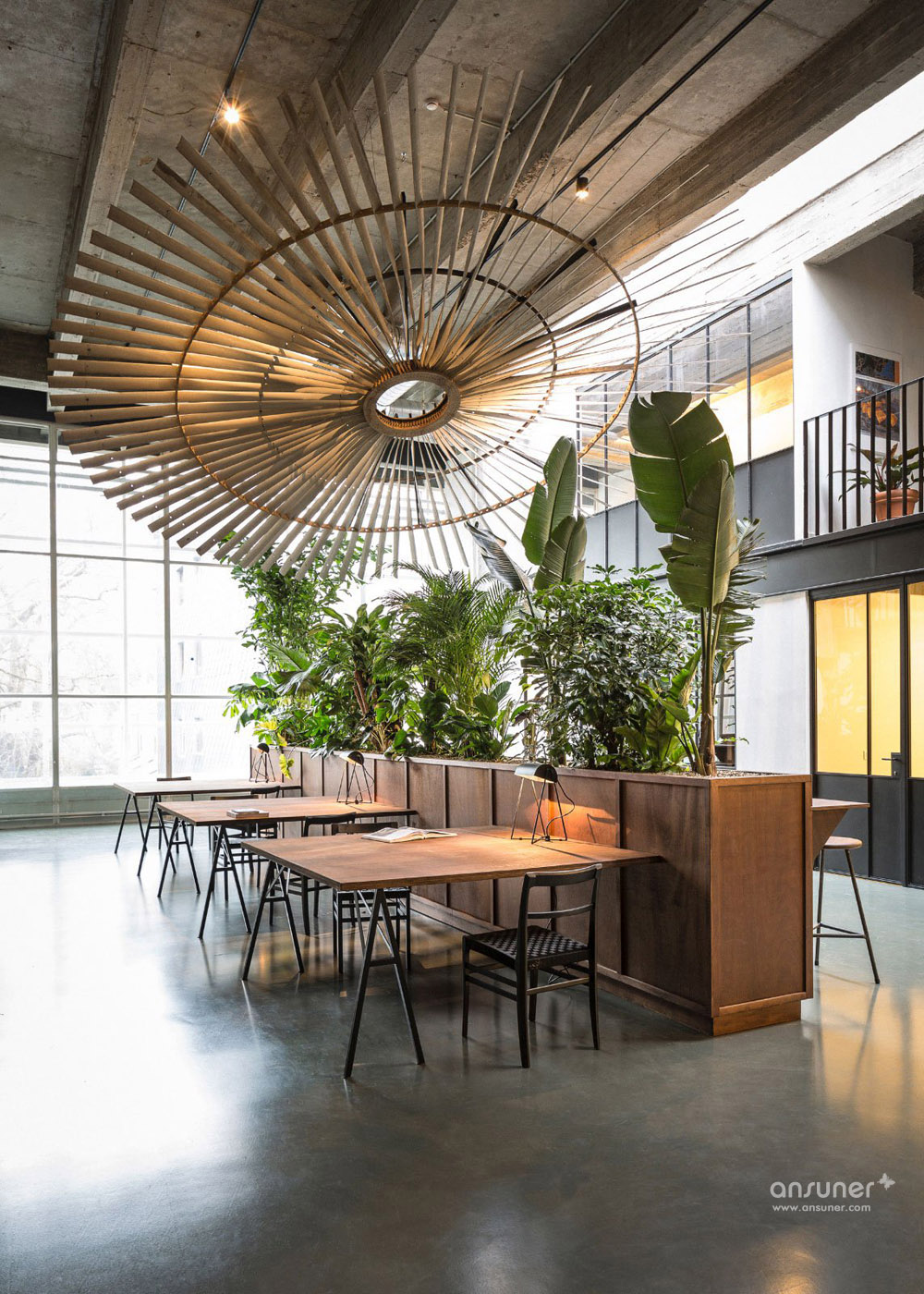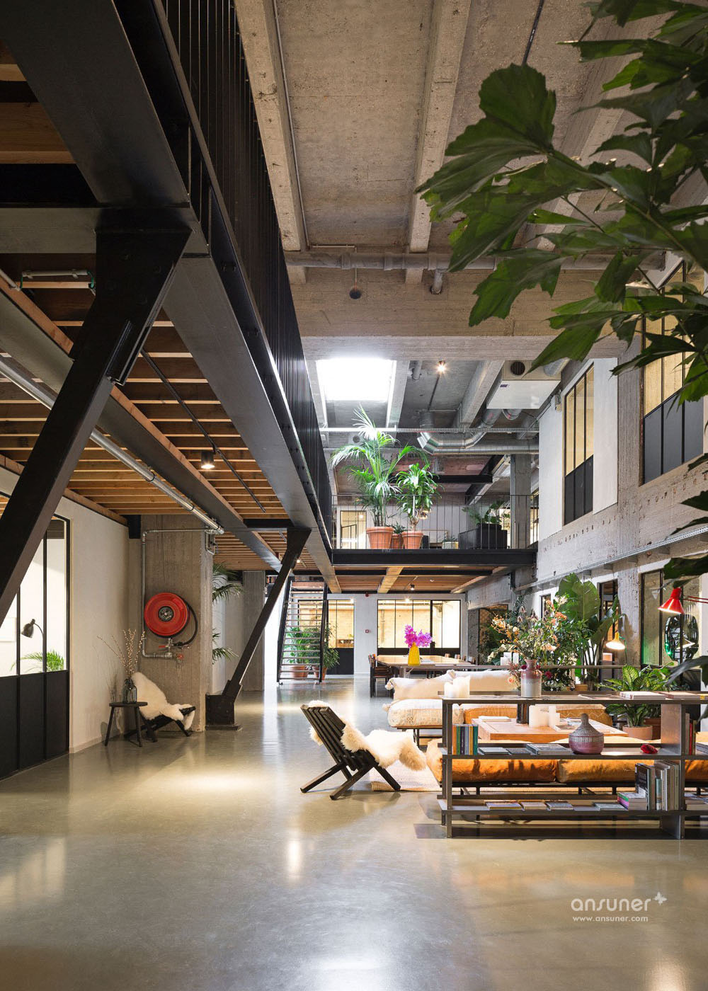 纽约著名的High Line park(高线公园)是一个由废弃的高架铁路货运线改造而成的公园。比利时设计团队Going East,将自己在这座公园的游历体验化作设计灵感,完成了安特卫普Fosbury & Sons联合办公空间的设计。