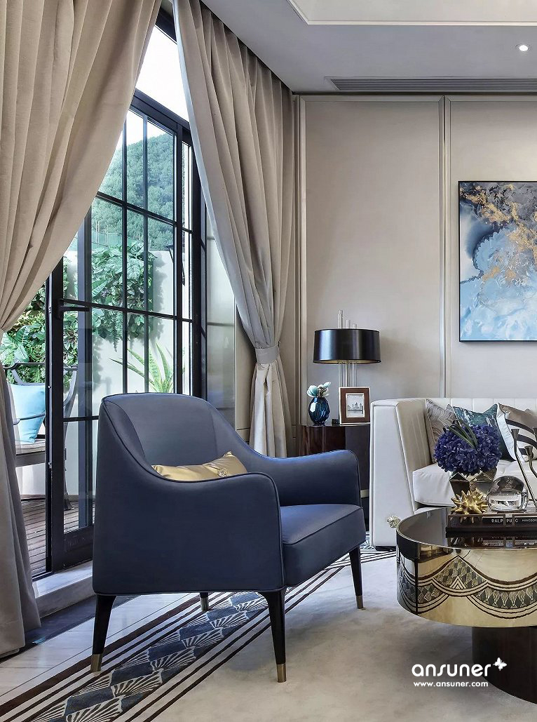 本案设计旨在整合都市的时尚以及知性的氛围,让身处其中的人尽享优雅,让生活时刻哼唱着灵魂的蓝调。