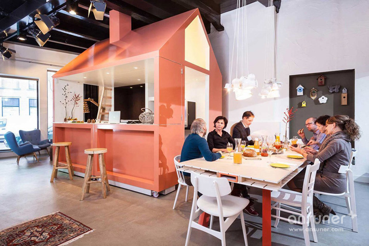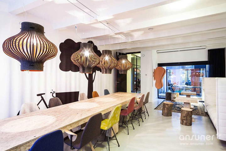 只有想不到的,没有做不到的。创意梦想这个词把它用于办公场所还是比较鲜见的。你曾经是否想过有一个空间进入的第一间房间,是一个有着巨大鲑鱼的粉色房间。一间可作为厨房、酒吧、或咖啡的休闲角落,旁边的餐厅可以提供有机健康午餐,人们可以在这里随意小聚、聊天、惬意的喝着咖啡。每个房间都有一个设计主题,如记者室、阁楼休息室等等。这样一个办公场所,当他们一踏入这幢建筑就带给他们满满的惊喜,让他们敞开心扉放飞创意梦想。自由创意紧紧靠联系在一起,简直就是完美。