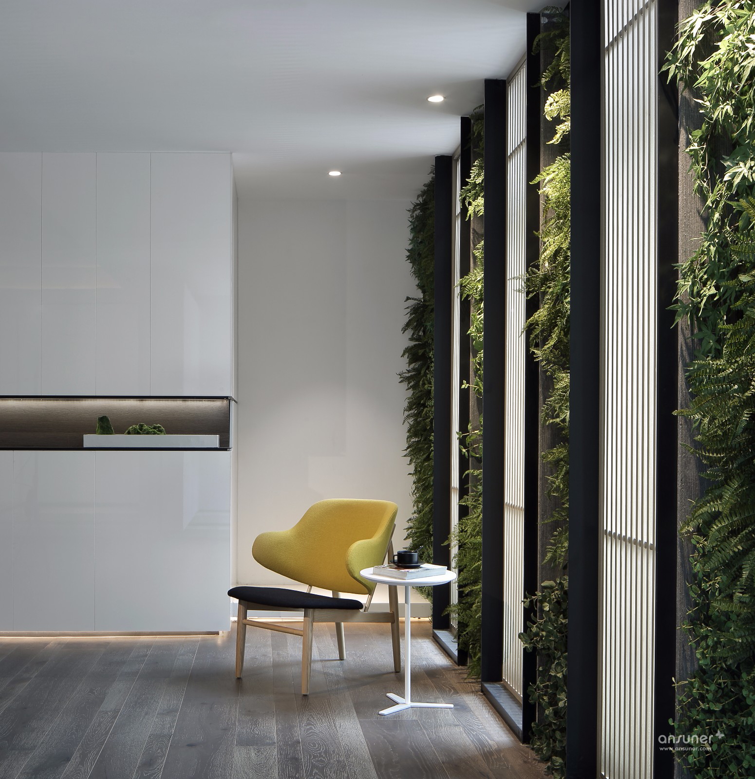 都说光是设计的最高手法,作为以室内设计入手的设计师,很难有很好的机会阐述对自然光的应用。此次,设计利用三道白墙的留缝处理,将自然 光请进室内,从而将原本空间中最暗的区域,锻造成整个空间的亮点