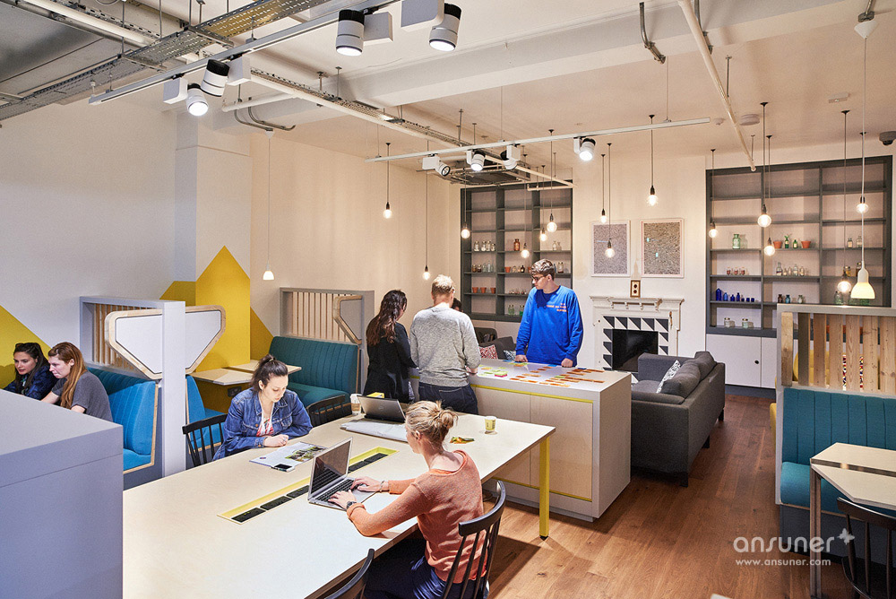 英国联合办公品牌Huckletree,旨在为志同道合且雄心勃勃的初创公司创建一个共享社区,在共同的目标下分享交流经验从而走向成功。其位于伦敦芬斯伯里广场Alphabeta大楼的办公空间由Studio RHE设计团队打造。Alphabeta大楼是一幢建造于1904年的历史建筑,经过Studio RHE的全力改造,这幢九层楼的历史建筑如今已成为伦敦新的创意空间聚集地,而其外表仍保持着岁月沉淀下的永恒魅力。时尚创意,正好契合Huckletree的品牌理念,因此选择这里开创新的联合办公场地。