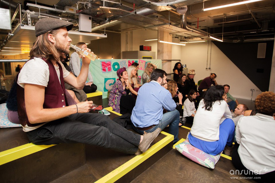 ▼300人座的大礼堂,以染色夹板制作的阶梯式座位并配以专业的舞台灯光,可以直接从Huckletree和Alphabeta中庭进入,这里经常会为其会员和公众举办相关活动;